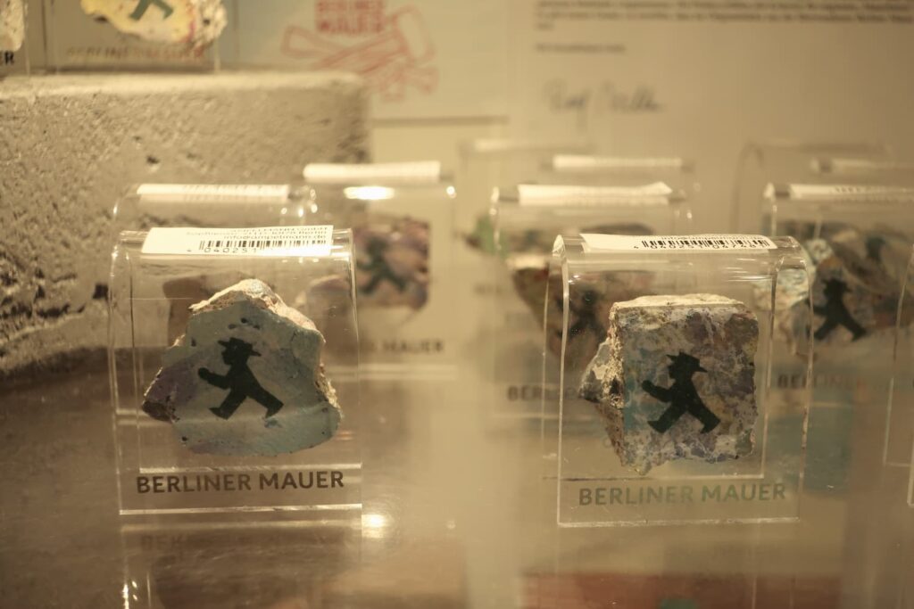 アンペルマンショップで他にはないようなものがあります。それは本物のベルリンの壁を使ったアイテムです。ベルリンの壁はベルリンでは一般的なお土産で、多くのお店で販売されています。