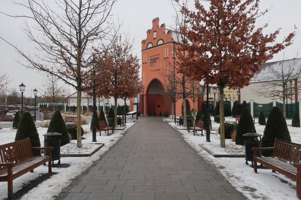 デザイナー・アウトレット・ベルリンが位置するのはベルリン近郊にあるブスターマルク(Wustermark)と呼ばれる町です。ベルリン中心部から移動する場合、鉄道とバスを乗り継いで1時間ほどで訪れることができるでしょう。